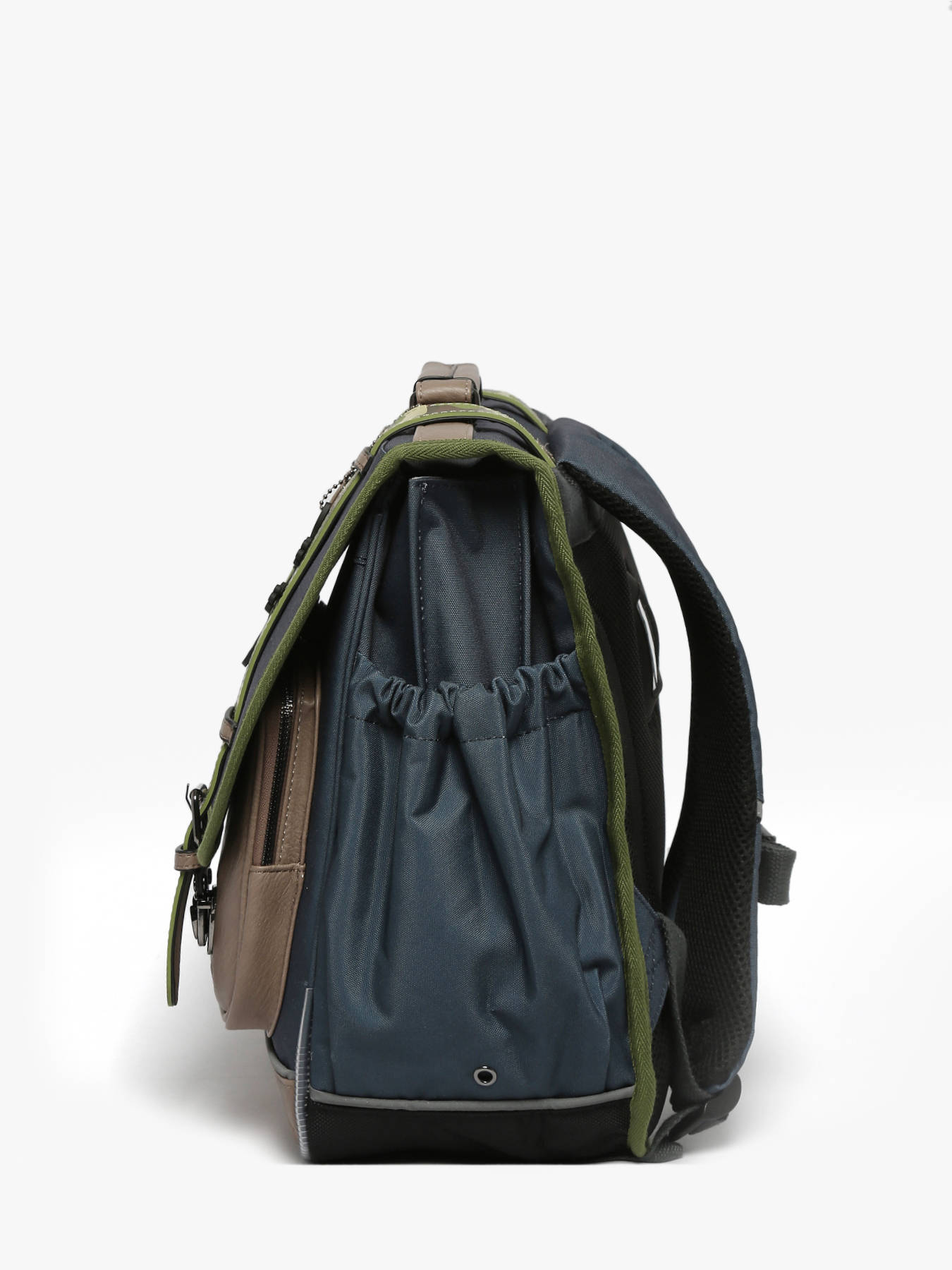 41 cm - 24 liter - 1.33 kg ~ Deze schooltas uit de Vintage collectie van het merk Caméléon heeft een breedte van 41 cm. Ideaal voor vanaf het 4de leerjaar! Dit model heeft een duidelijke vintage look, dankzij twee voorvakjes en de riempjes met gespen. De schooltas beschikt over drie ruime compartimenten, die schriften (24x32 cm), mappen en schoolboeken van A4 formaat kunnen bevatten. Onder de overslagflap bevindt zich ook een uniek opbergvakje, voorzien van een gratis liniaal. De twee kleine ritsvakjes vooraan zijn perfect om een snack of andere kleine spulletjes in te stoppen. Dit model beschikt ook over een naamlabel aan de achterzijde, en kan makkelijk gesloten worden dankzij een dubbel kliksysteem. Voor optimaal comfort zijn de rugzijde en schouderbanden extra gewatteerd. Dankzij enkele reflectoren kan uw kind zich ook veilig in het verkeer begeven. Vintage op z'n mooist!