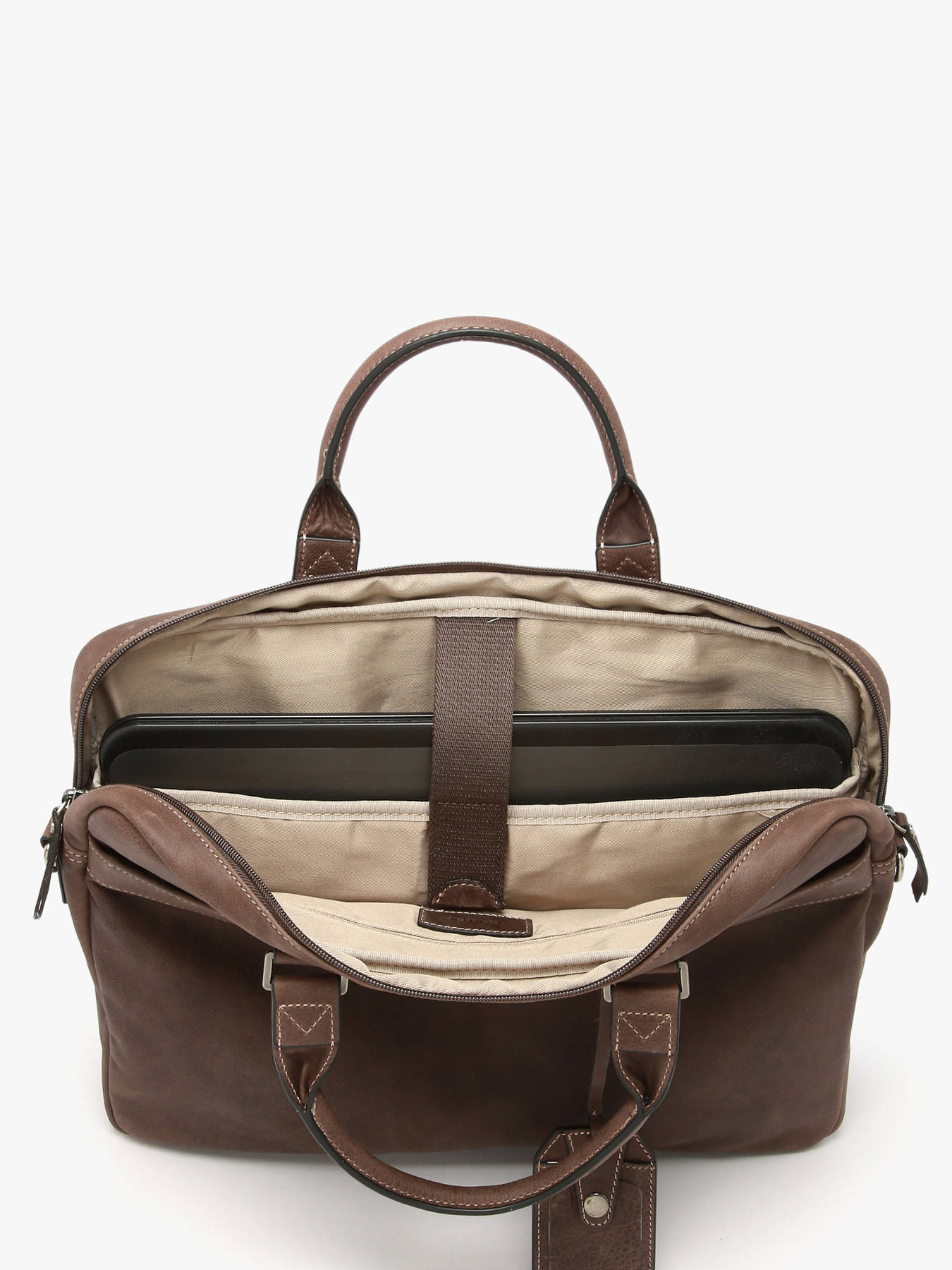 Heren, aarzel niet langer en wees stijlvol als u gaat werken. Etrier biedt u deze prachtige aktentas uit de Spider-lijn, gemaakt van hoogwaardig leer. Ze heeft twee buitenvakken, een rits aan de bovenkant om uw spullen veilig in op te bergen en een verstelbare, afneembare schouderriem, zodat u haar aan de hand of kruislings kan dragen. Binnenin kan u gemakkelijk uw 15"" laptop, een notitieblok, een dossier van A4-formaat, uw kleine spullen in het zakje met rits, enz. kwijt. Uw collega's zullen jaloers zijn op uw prachtige aktentas.