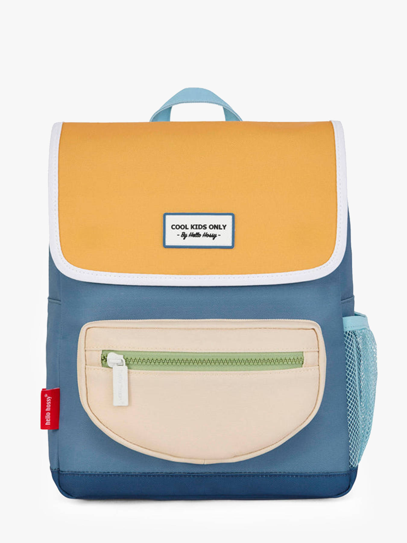 38 cm - 15 liter - 0.57 kg ~ Gemaakt van gerecycled polyester is deze HELLO HOSSY rugzak ideaal voor kinderen vanaf 6 jaar. Licht en duurzaam, combineert hij praktisch gebruiksgemak met een ontwerp dat is afgestemd op het dagelijkse leven van de kleintjes. Hij heeft een groot hoofdvak met een steekvak om schoolspullen gemakkelijk te organiseren. Aan de buitenkant bieden een voorvak en een zijvak extra opbergruimte voor kleine spullen of een drinkfles. De sluiting gebeurt met drukknop en klep, wat veiligheid en snelle toegang garandeert. De verstelbare schouderbanden zorgen voor comfort dat meegroeit met het kind. Deze tas kan zowel op de rug als in de hand worden gedragen, wat flexibiliteit en stijl biedt. Geschikt voor het meenemen van schriften, A4-mappen en ordners, begeleidt hij de eerste schooljaren met elegantie en ecologisch bewustzijn.
